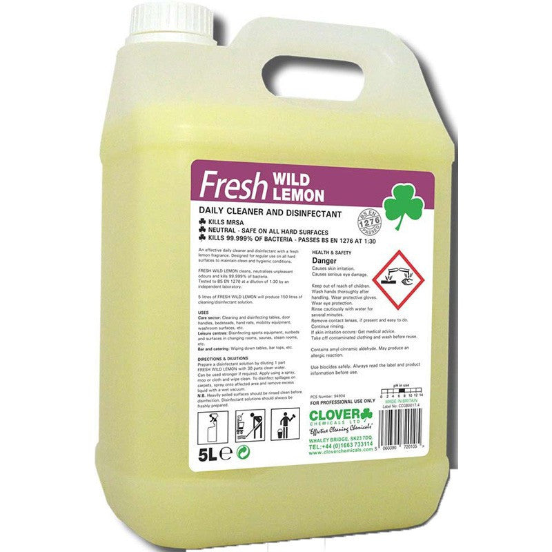 The Fresh Wild Lemon Deodorising Disinfectant Cleaner from Clover is an effective daily cleaner and disinfectant with a fresh lemon fragrance. Designed for regular use on all hard surfaces to maintain clean and hygienic conditions.Kills 99.999% of bacteria. KILLS MRSA
