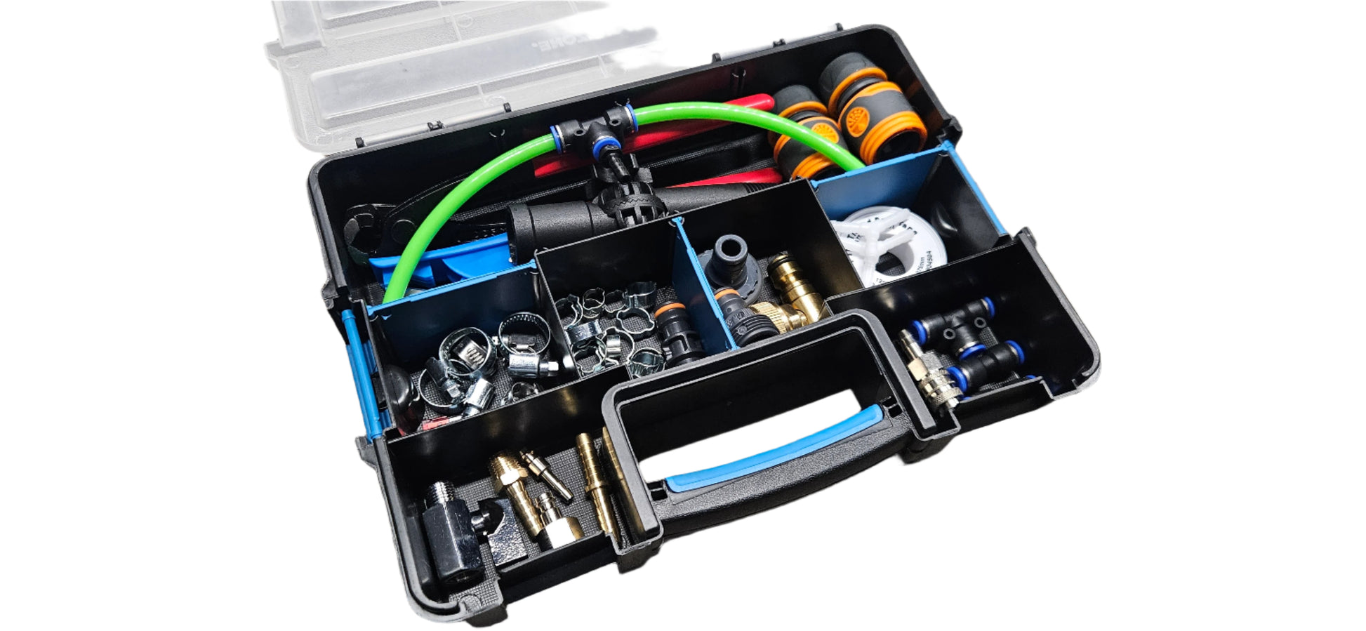 This 48Piece SOS spares kit is the perfect addition for any water fed pole system, nobody wants breakdowns, usually this is a simple fix, however if you don’t have the spare part to hand, waiting on deliveries can be frustrating and cost hundreds in lost revenue. This kit has been carefully picked and put together with this in mind in a handy plastic carry case.