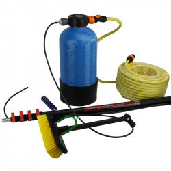 This kit makes pure water instantly to clean windows spot free: you plug your tap water to the canister, which is filled with purifying or De-Ionising Resin, and then you connect the outlet on the canister to the water fed pole and you are ready to start working! You can check the purity of the water with the TDS meter to make sure it's always 0 ppm.It's as simple as that!Ideal to clean solar panelsRecommended Features for a complete solar panel cleaning kit:
