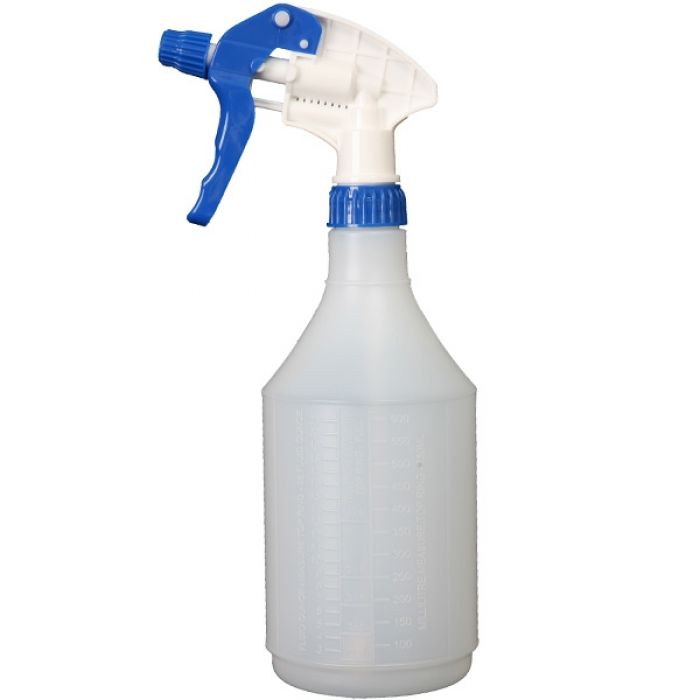 Complete plastic spray bottle and trigger set, 600ml bottle.